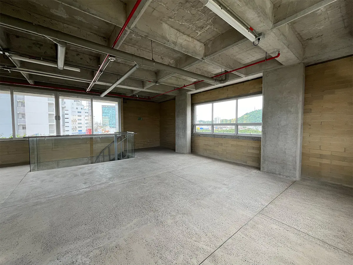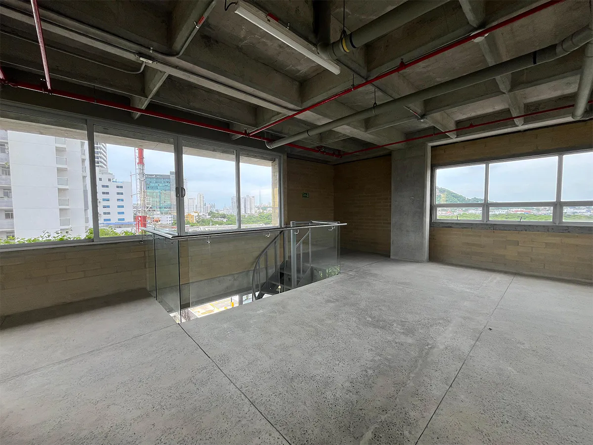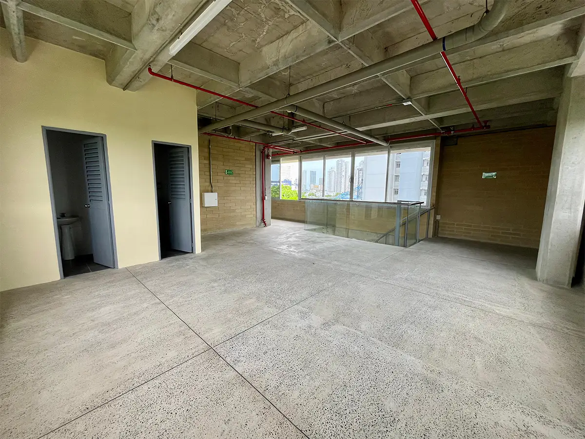 Oficina corporativa de 135 m² distribuidos en 2 pisos, ubicada en sector Manga; zona portuaria de Cartagena, Con un diseño que fusiona funcionalidad y estética contemporánea, este inmueble presenta un marcado estilo industrial que lo hace destacar en el mercado. Ideal para adaptarse a diversas necesidades, ofrece espacios amplios y luminosos, listos para personalizar. Sus interiores en obra gris brindan un espacio modular para ser adaptado.